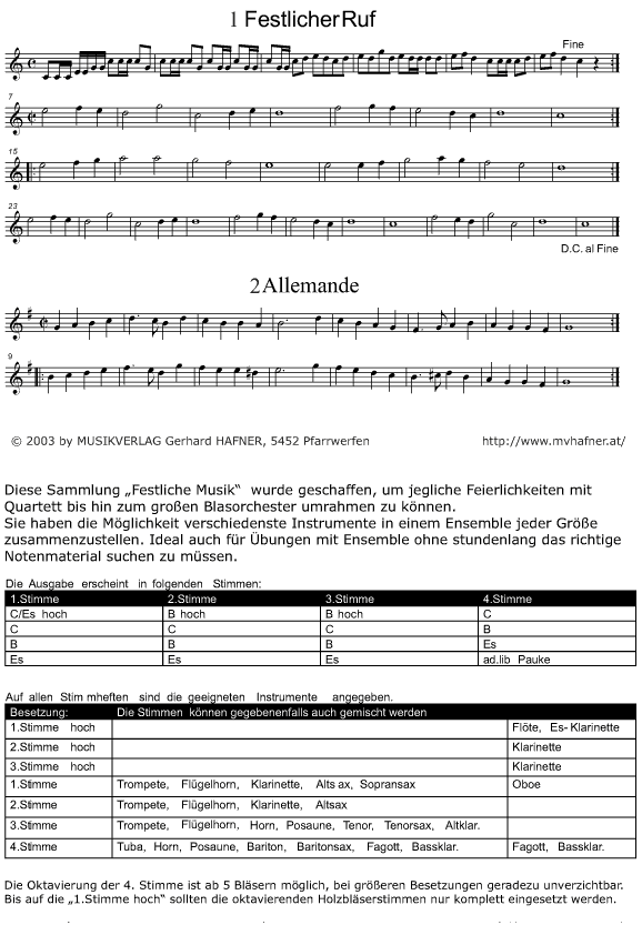 Musterpartitur * MusterpartiturFelder mit einem Sternchen (*) sind nur für Vereinsmitglieder nach Anmeldung ersichtlichhier klicken